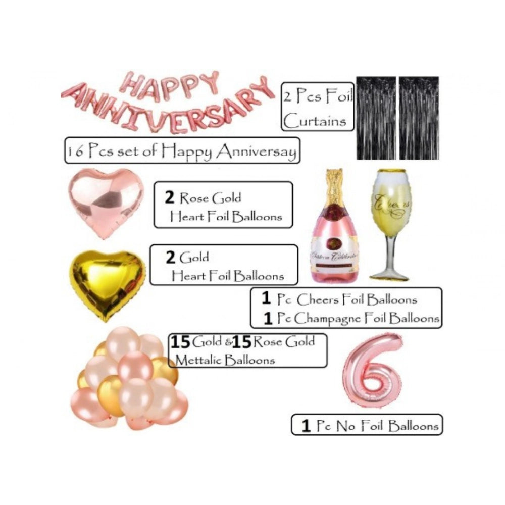 Generic 6Th Anniversary Rose Gold Foil Balloons With Happy Decoration Items Set (Rose Gold)