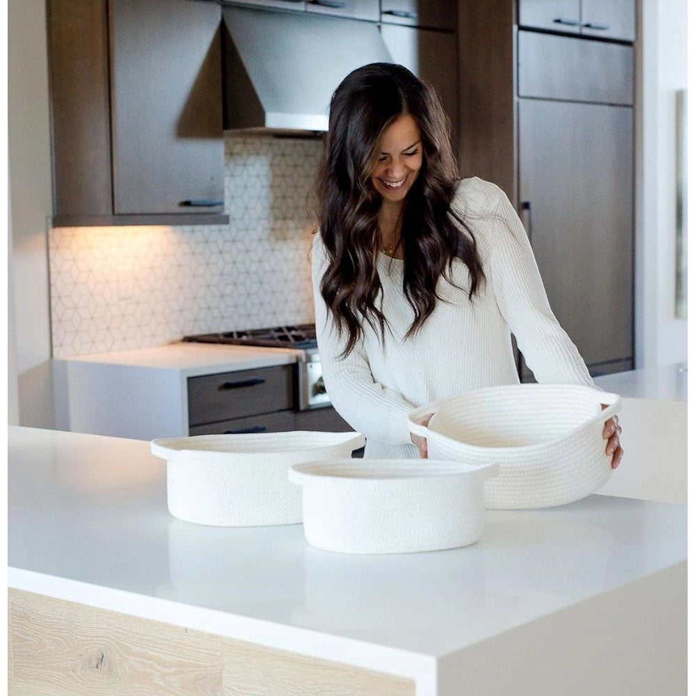 Generic Cotton Oval Basket Pack of 3 Storage Basket For Clothes (White)