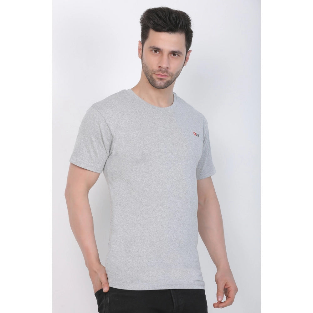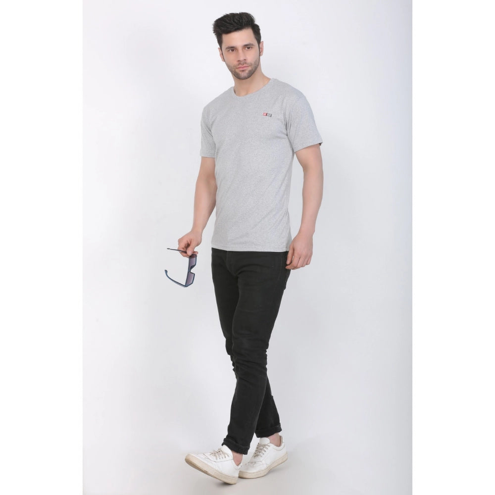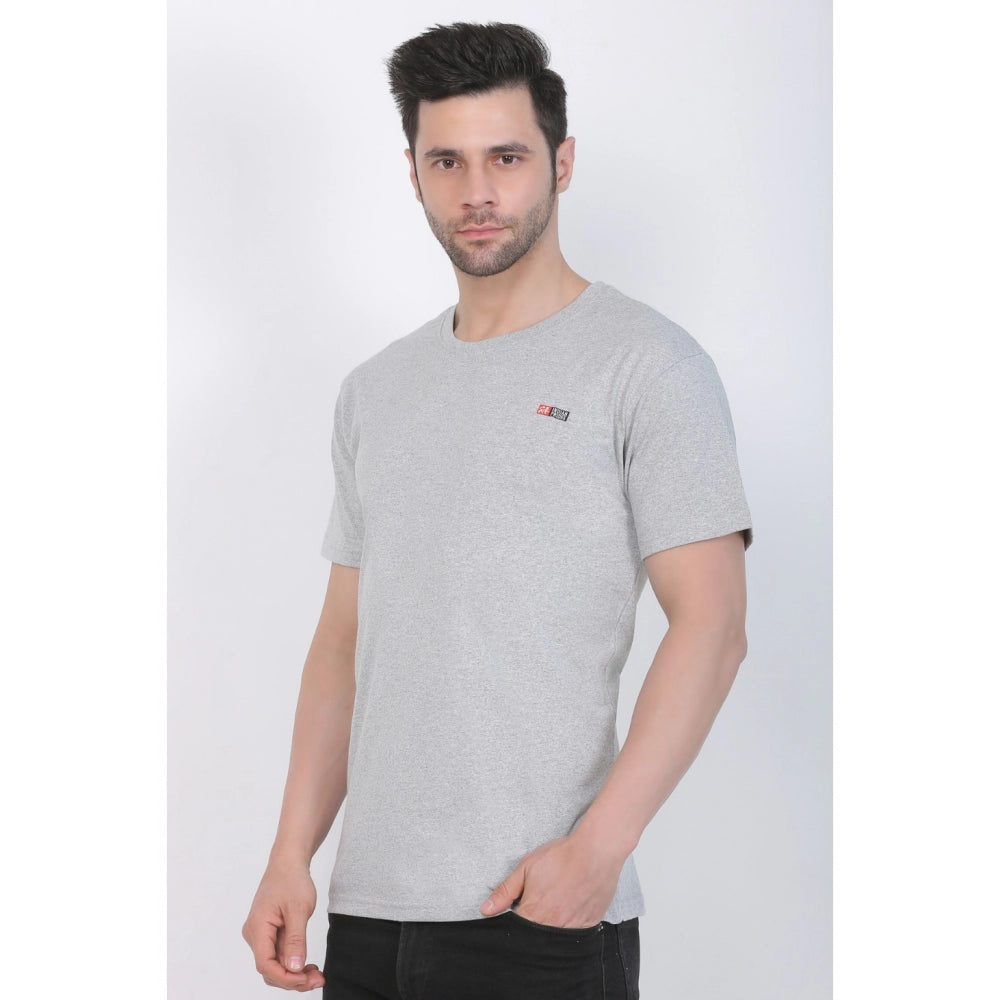 Generic Men's Cotton Jersey Round Neck Plain Tshirt (Grey Melange)