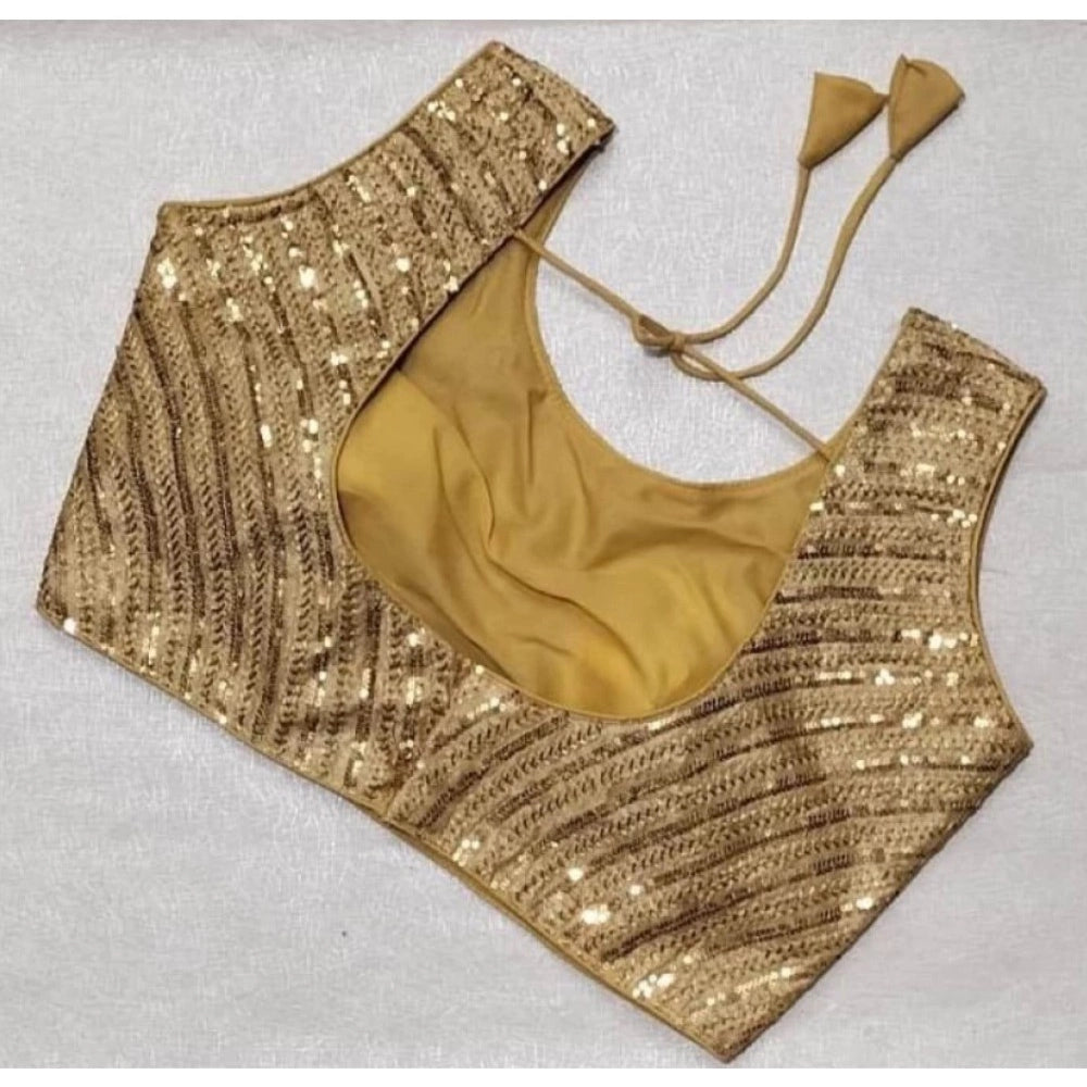 Generic Women's Cotton Silk Embellished Padded Cup Readymade Blouse (Beige, Size: Free Size)
