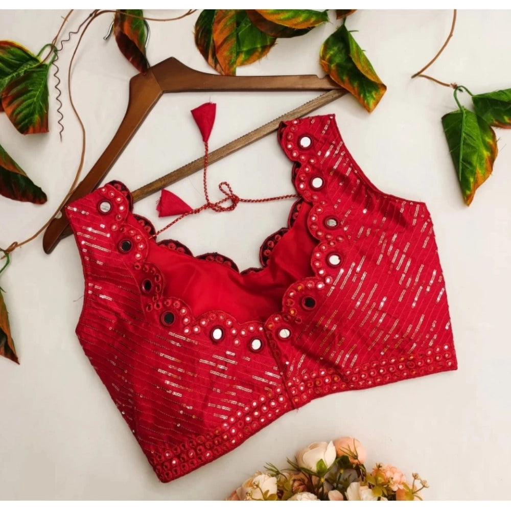 Generic Women's Cotton Silk Embellished Padded Cup Readymade Blouse (Red, Size: Free Size)