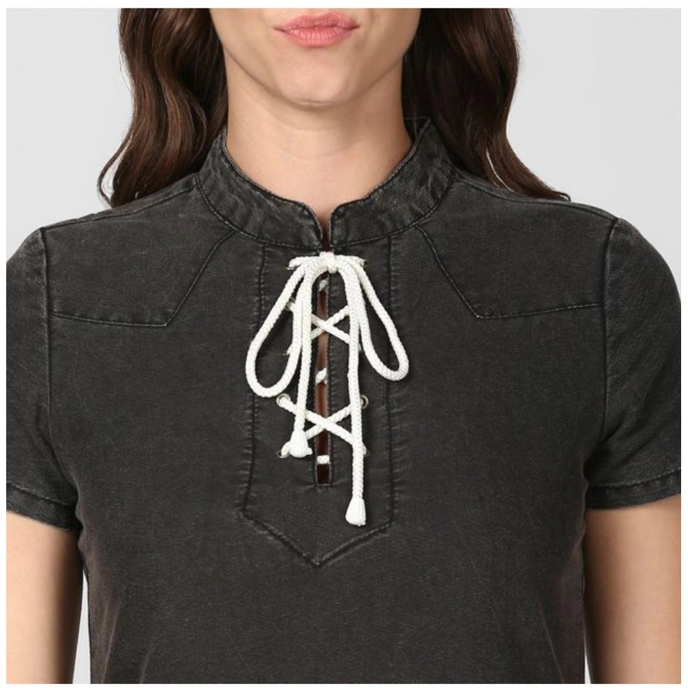 Generic Women's Denim Solid Short Sleeve Above Knee Dress (Black)