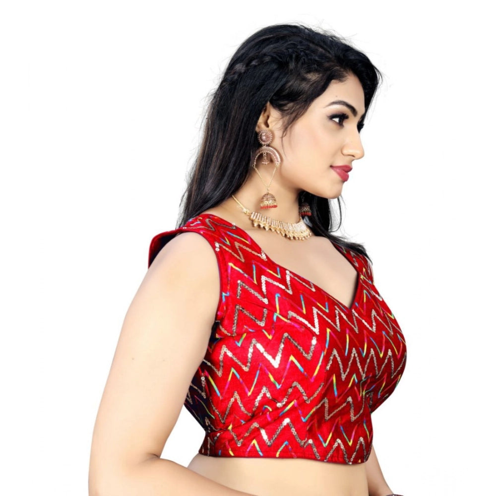 Generic Women's Phantom Sequins Readymade Blouse (Red, Size: Free Size)