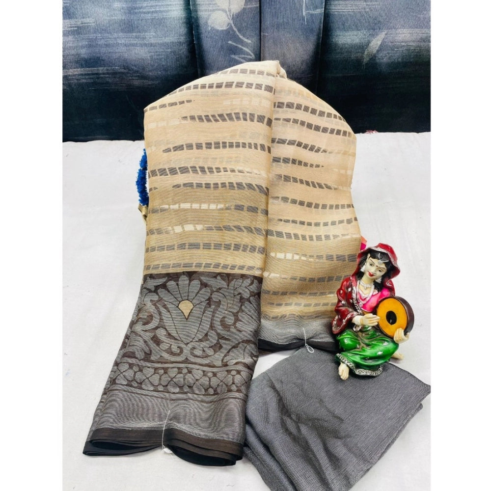 Generic Women's Viscose Rayon Printed Saree With Unstitched Blouse (Beige)