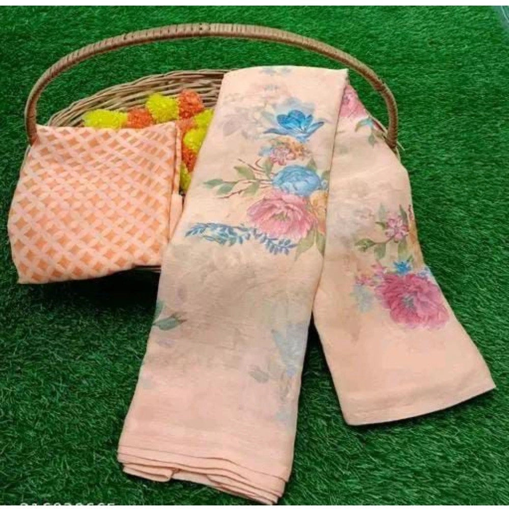 Generic Women's Viscose Rayon Printed Saree With Unstitched Blouse (Peach)